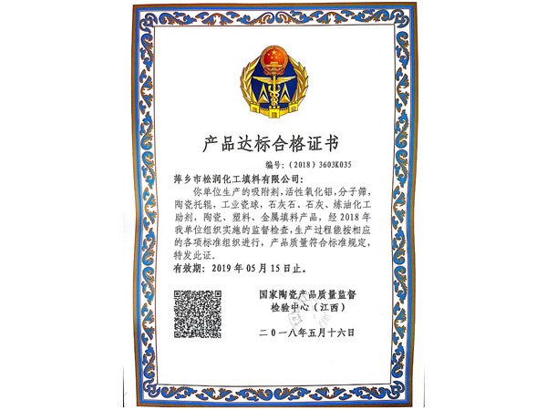 產(chǎn)品達(dá)標(biāo)合格證書